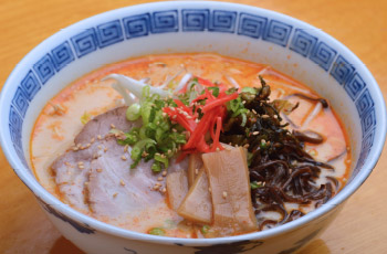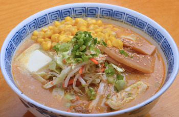 Ramen noodle in soybean paste base soup with stirfried minced pork & vegetables, bamboo.
